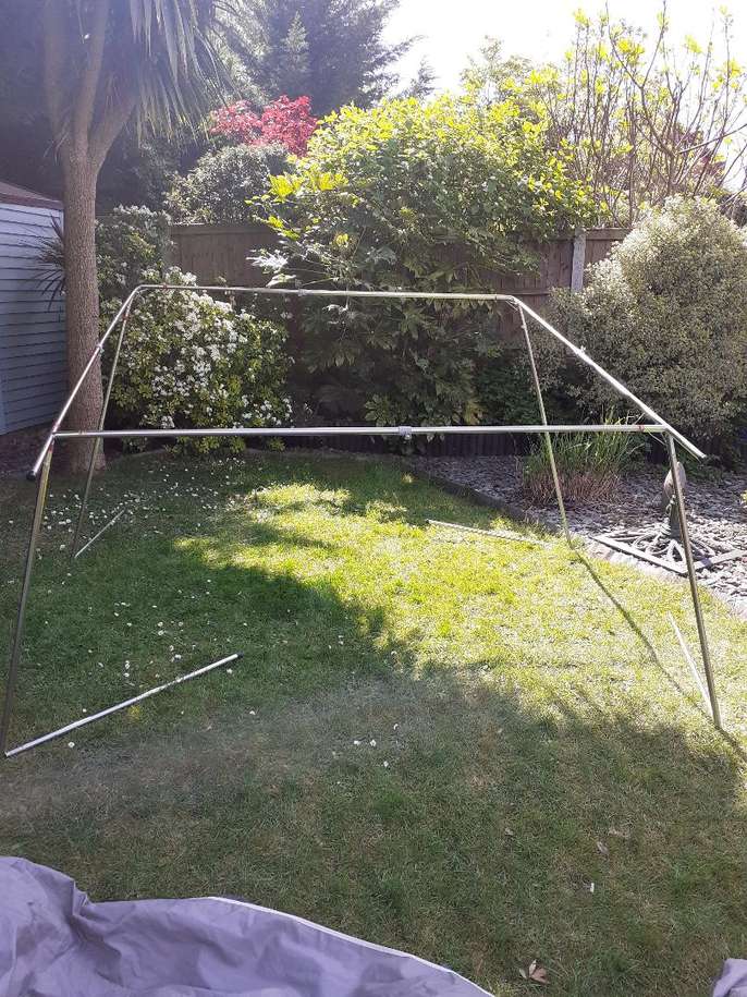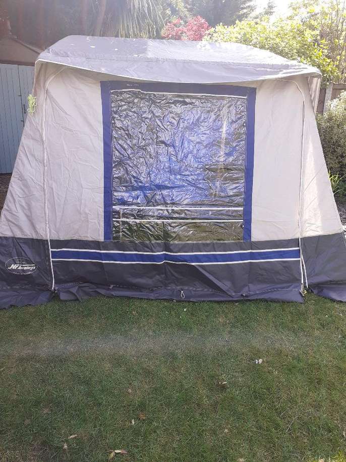 N.R. Awnings Motor Villa. In good condition, has complete set of curtains but no bag. Approx measurments 2100high at the back (vehicle) 1800 at the front. 1650 from front to back 3000 wide at bottom front 2000 wide top front. Windows in front and each side, zip up door each side. Front panel can be completely removed. Metal frame.