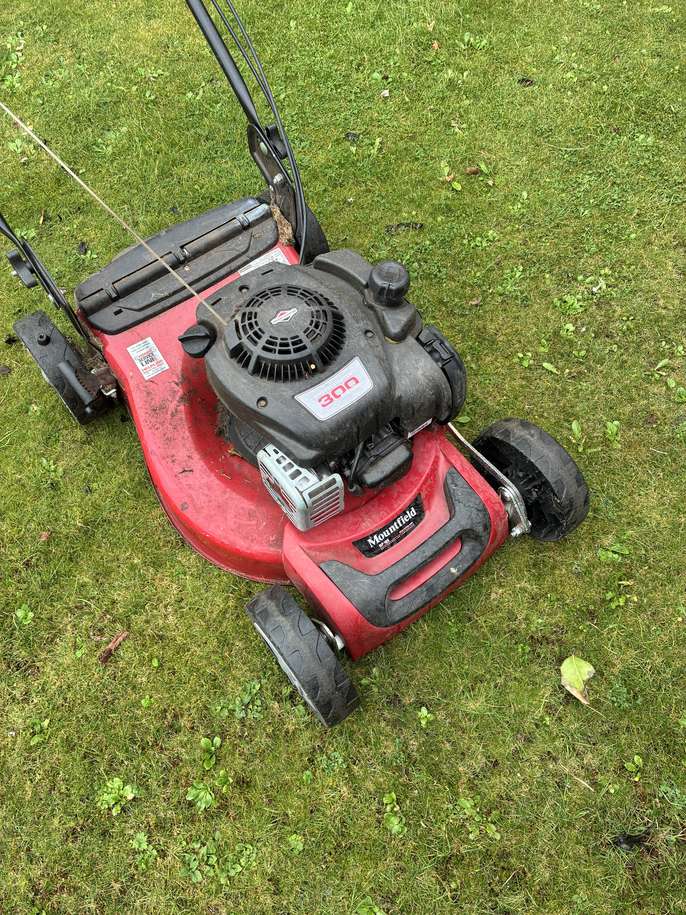 Self propelled petrol lawnmower. Haven’t used it for six months or so. But it still works. Might need a tweak or two! Battered and bruised but still did the job.