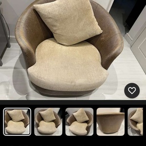 Heavy rattan chair with cushions from Multiyork Approx measurements: Height 82 cms Width 101 cms Length 94 cms