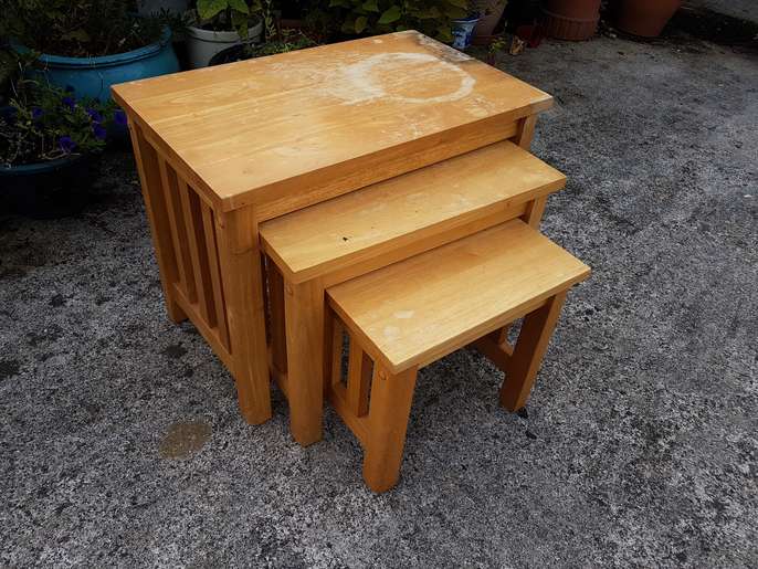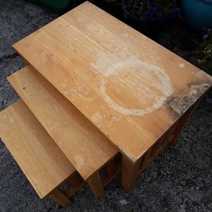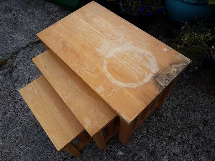 I have a Nest of three tables. they need doing up . The large one has water marks to the top. The other two are fair.