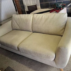 Oatmeal coloured Next sofa. Small, faint stain on one cushion.