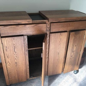 42x14x36ht. Oak buffet. Shelf inside and top slides to use as a server