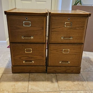2 oak file cabinets; each 16"x16"x 28"H Good condition Text 781-789-9033 for availability and pick up in Needham