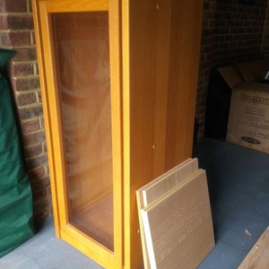 Tall hifi cabinet with glass door, four adjustable shelves. Back has been detached and refixed several times.