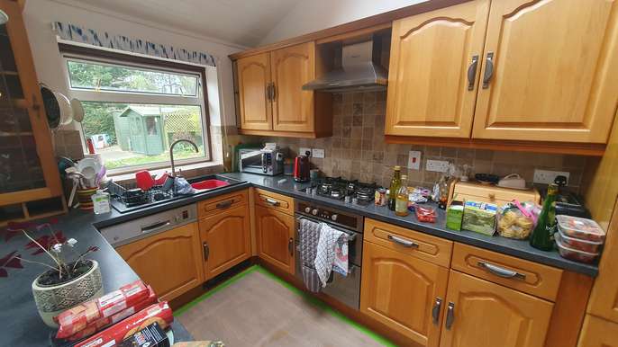 Many oak kitchen units as seen in picture. Being removed on Monday 27th March, would need to be collected within a day or so. Free. About 30 years old, but still in good condition.