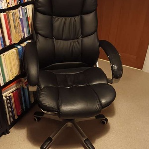 Very comfortable office chair with small tear in seat. Supports back, and moves on castors easily. The chair is available immediately from Ashtead.