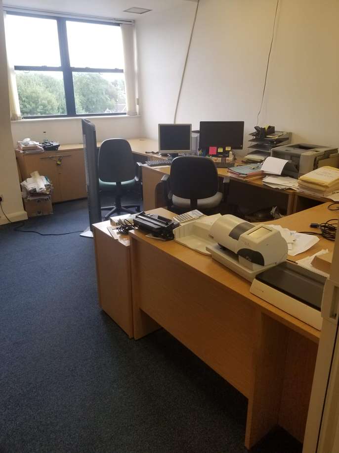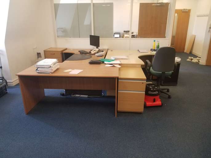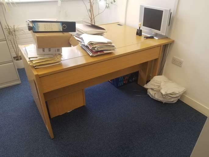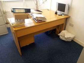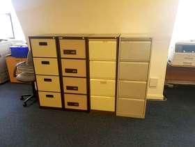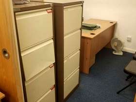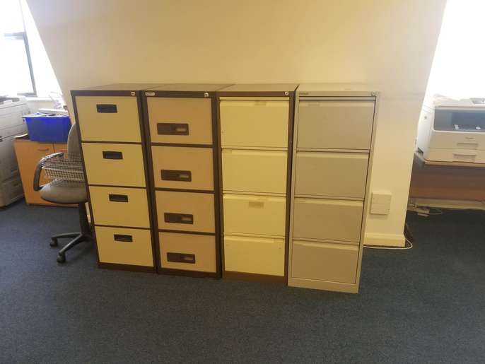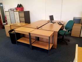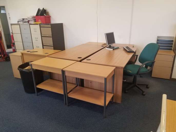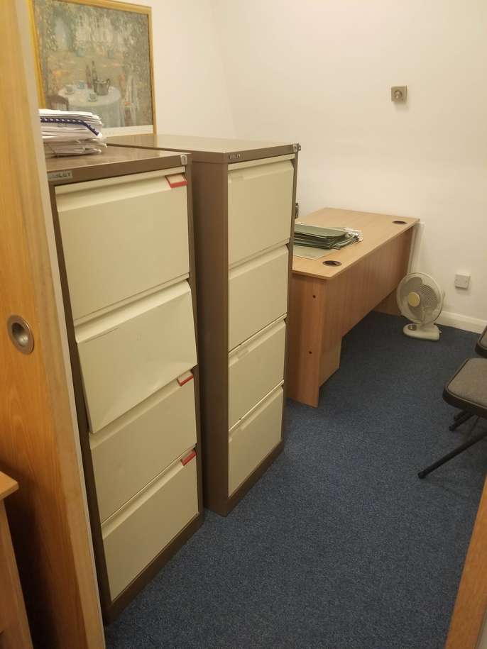 Office closure - There are a number of left-over items of furniture. Most are in very good condition with some scratch and use marks. 16 Desks 19, 4-drawer filing cabinets 20, small 3-drawer side desk cabinets 3, desk-height 2 door cupboards 5 small desk/tables 7 office chairs 2 silver cabinets with sliding covers