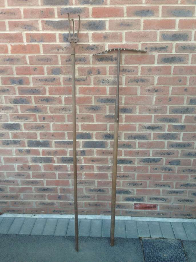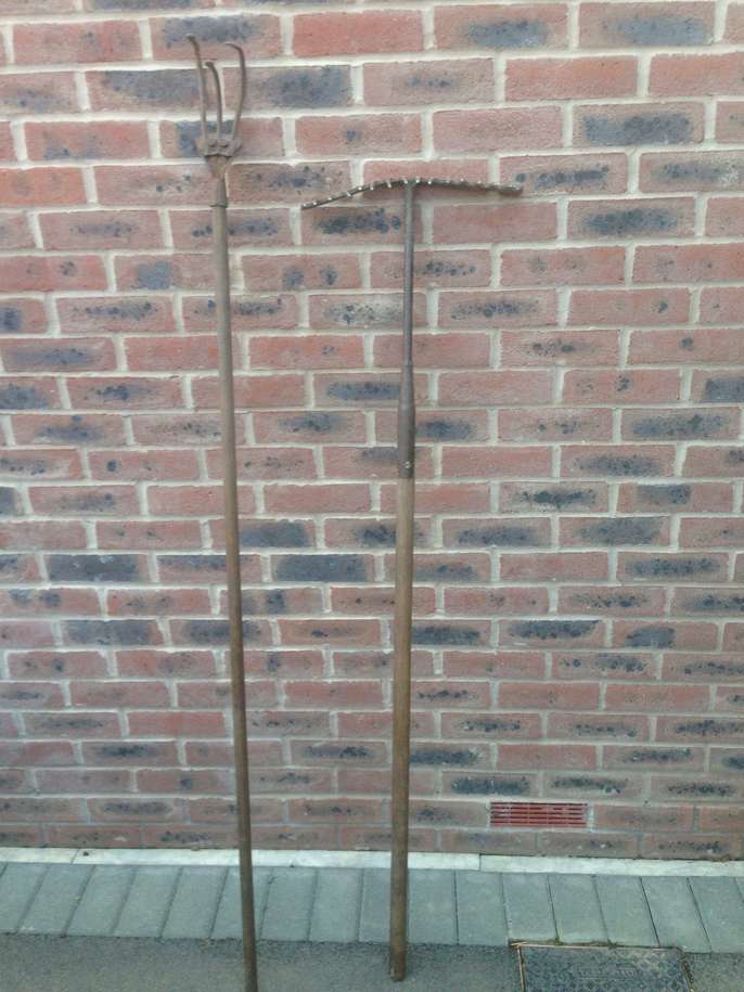 Old rake and hoe This item is in East Leake GB All the details Vintage heavy duty rake and three prong hoe. Category Home & Garden The Request Period For This Item Has Ended The request period for this item has ended Post Message