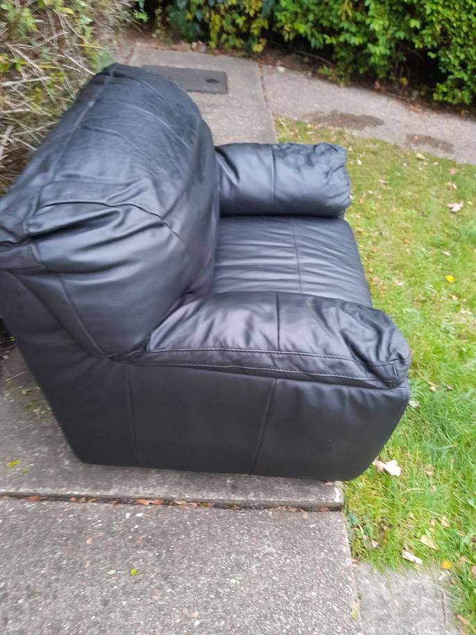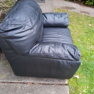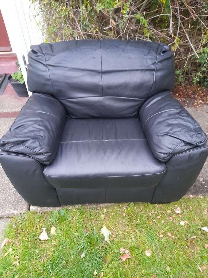 One black leather sofa chair available for collection in very good condition hardly been used you can see from the seat area still firm
