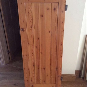 1930’s solid pine cupboard door, stripped and varnished. L1491mmxW609mmxD33mm. Originally used as an understairs cupboard door.