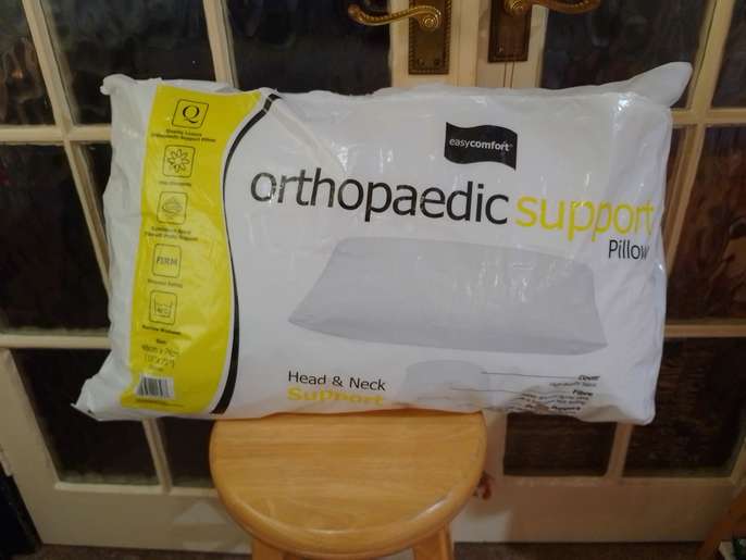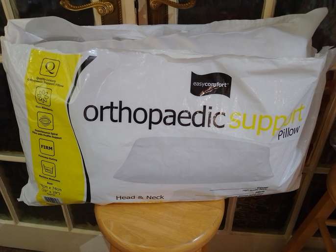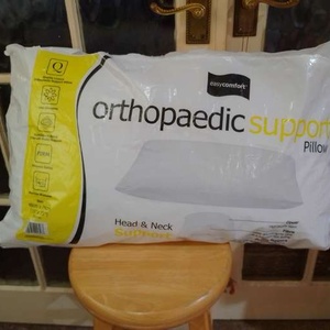FIRM Orthopaedic pillow for head and neck, never used, bought last week. Plastic wrapping has been cut open thus I cannot return it to the store. Dimensions are 48 x 74 cm (19 x 29 ins)