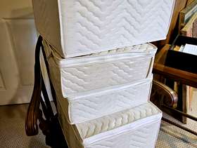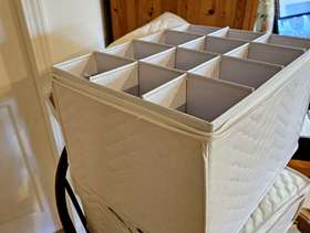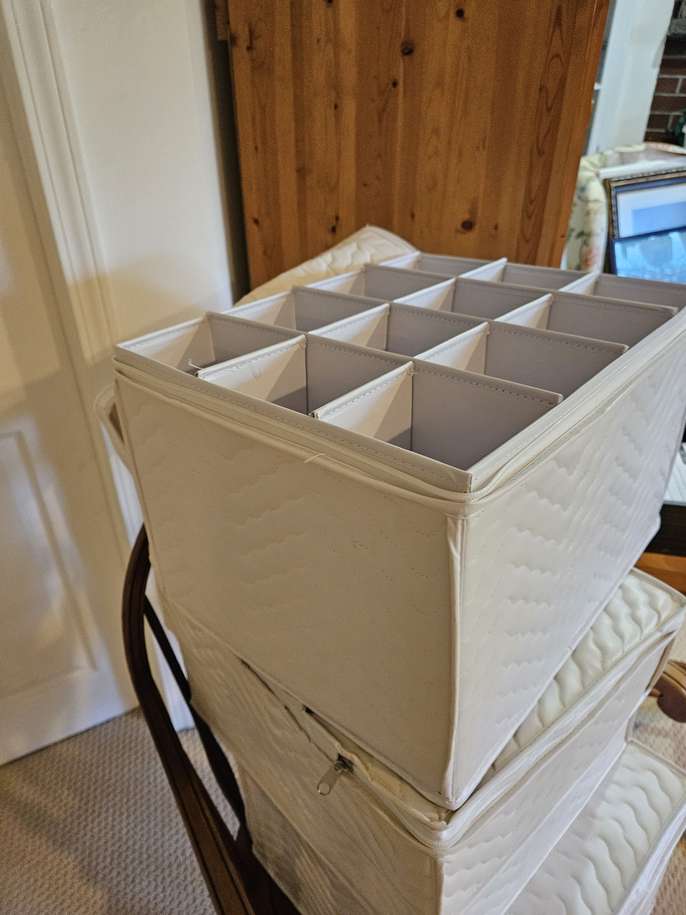 4 padded glass storage boxes to protect your glassware. Two for large water glasses and two for small rocks glasses. Please text 781-789-9033 for availability in Needham.