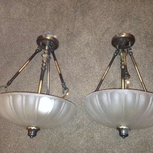 Pair of lamp shades in good condition. Each one takes 3 bulbs.