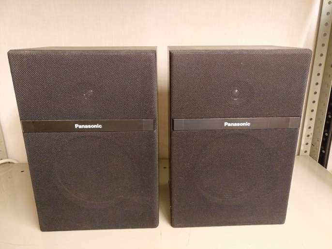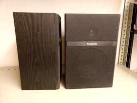 I have here a Pair of Panasonic Black Bookshelf Style Speakers. Please note these are not powered speakers and therefore require a suitable audio source like an amp, they connect with standard dual strand speaker wire which is hard wired to these speakers. They are of wooden construction, black in colour and have the following approximate dimensions: Height: 32.3cm Width: 22cm Depth: 16.5cm Speaker Wire Length: 213cm Good overall condition, tested and working when last used. According to the sticker on the back these are Panasonic SB-ZM10 2 Way Speaker System. Collection from Yate at your convenience. Thanks, Mark