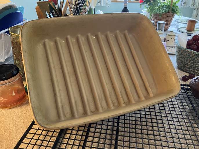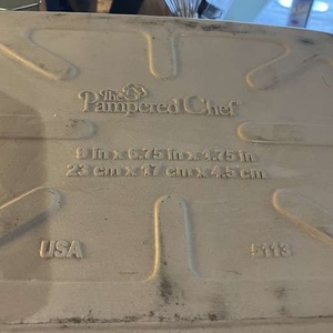 For Pampered Chef lovers - Ceramic Baker for oven use hardly used. Has small superficial crack line on inside only. Think it will last for years if used carefully and washed by hand.