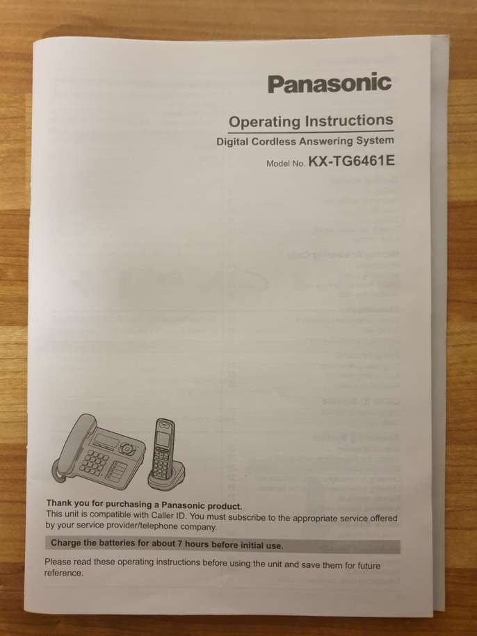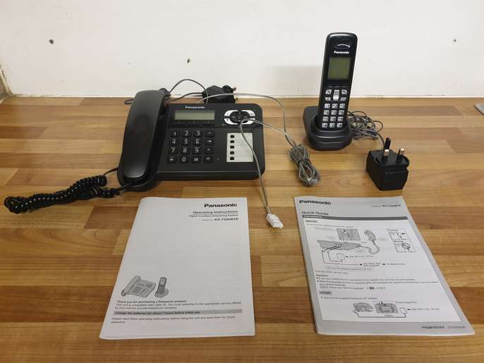 We have gone 'fibre only' so the system was being used until very recently. Panasonic KX-TG6461E consisting of a fixed base phone and a cordless unit with stand for remote operation. It is complete with an instruction manual & only needs two batteries for the remote unit. There are two power units included for the fixed base & remote phone stand.