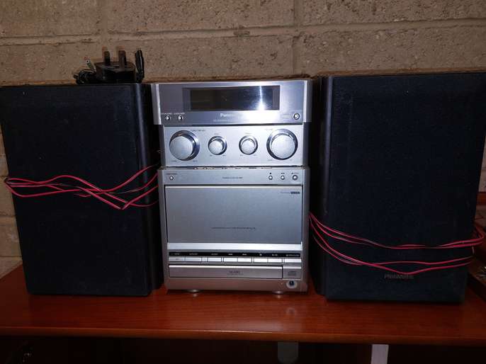 Free standing Panasonic music unit with Radio tuner - CD player with two speakers good condition and excellent sound, available due to deceased fathers house clearance. Un-boxed mains cable and speaker wires. Free collection only from Worthing must be gone by mid Dec 25.