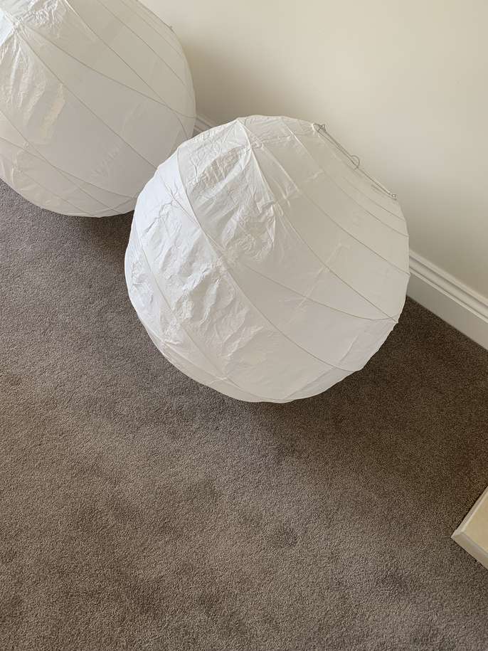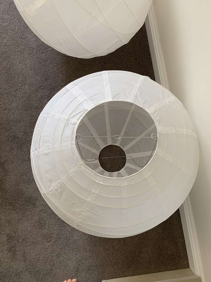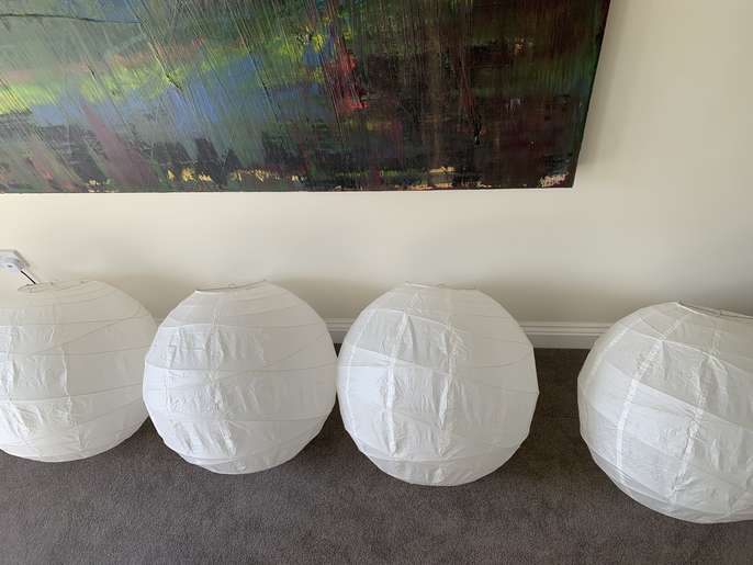 There are 4 or you can have just one. Paper hanging light shades. All in good condition, one has a tiny slit at the top (easily repaired with clear tape)