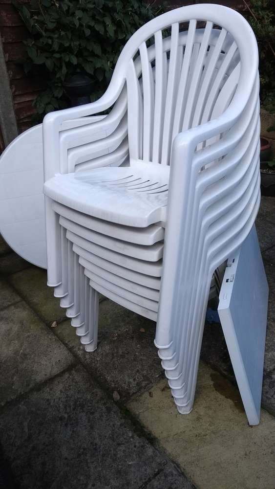 Patio set This item is in Chippenham GB All the details Good quality white patio set, 8 chairs with arms, table and extension if required. Category Home & Garden The Request Period For This Item Has Ended The request period for this item has ended Post Message