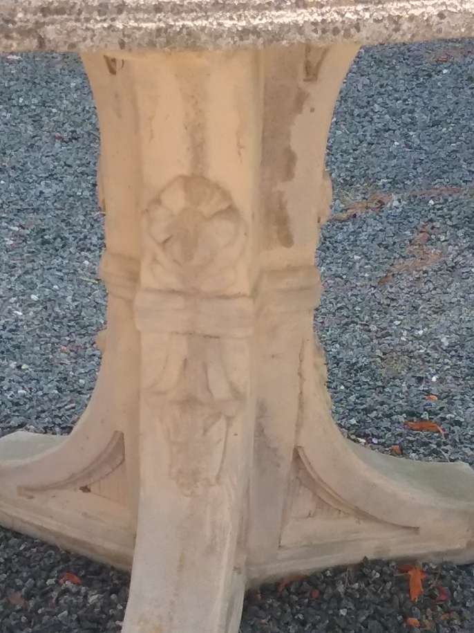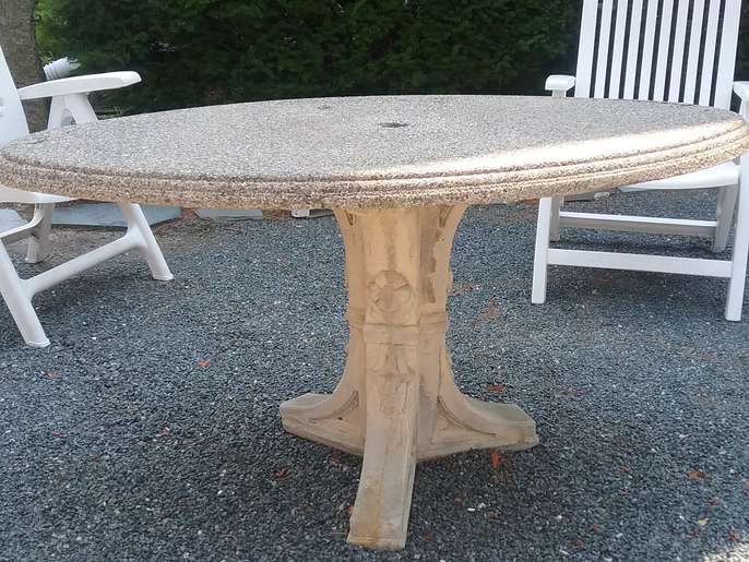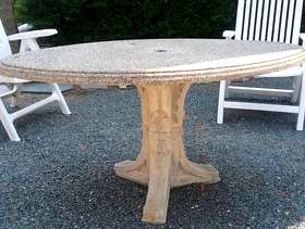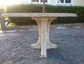 Free cement patio table with oblong top. Top and base separate for easier transport. Heavy, will need 2 people to move it . Call Jo for pick up location in Duxbury 781-934-2871.