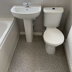 Good condition pedestal basin with taps & waste. Good condition toilet with sensor flush