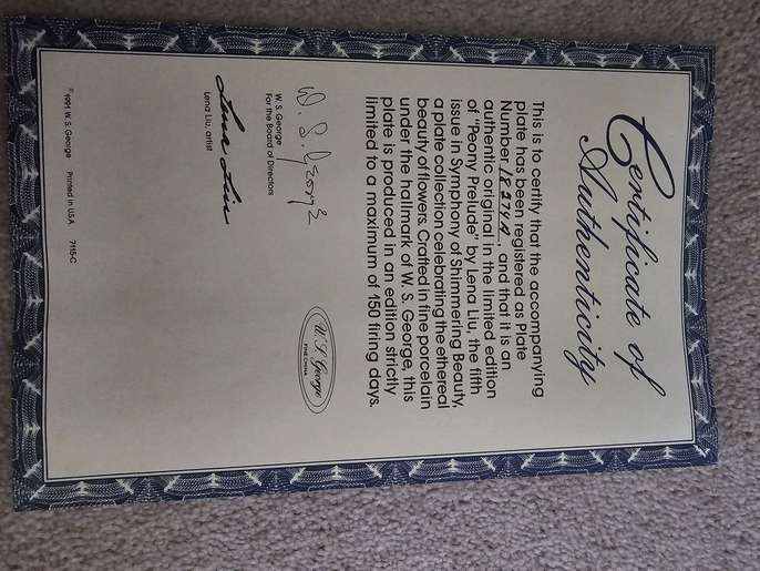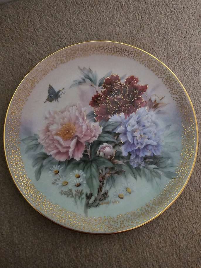 "Peony prelude" decorative plate This item is in Hook Heath GB All the details Excellent condition. Certificate of authenticity. Original box 21.5cm diameter Time Remaining This listing has finished Category Home & Garden Post Message