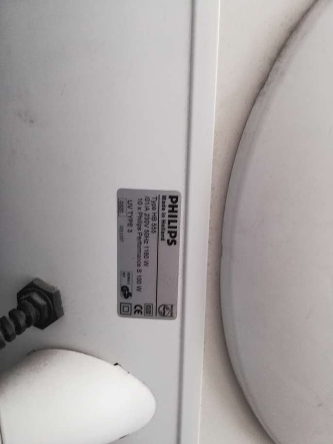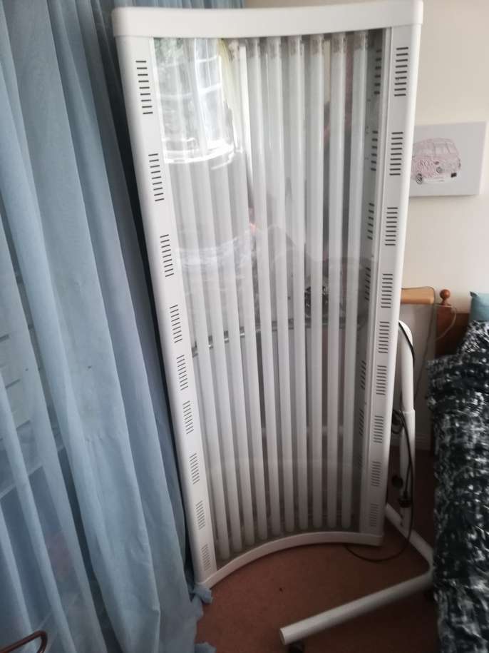 Fully working Sunbed can be used standing or over bed All specific details can be found at https://www.philips.co.uk/c-p/HB555_01/full-body-solarium Frame can be removed to fit into an estate car Collection Emsworth PO10 8DG