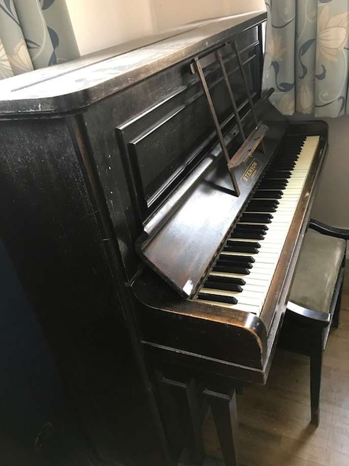Stenson upright piano and stool, free to a good home. The piano has been tuned earlier this year and has provided musical entertainment over a number of years in the Village Institute. Collection only.