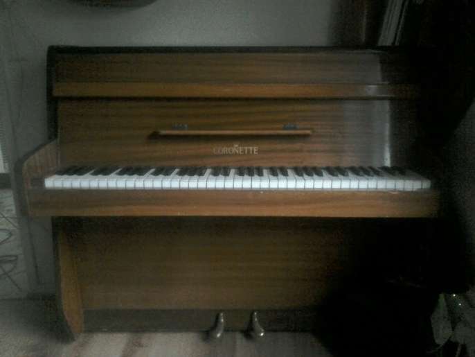 This is a reduced size, 77 key, (six full octaves) Coronette piano. I've owned it for 12 years and it has been useful as an instrument for learning on. As you will gather from the dimensions given below, it is not so imposing as to dominate a room, as so many uprights are. It is also a lot easier to move. Overall it is in good condition with no broken keys or non-functioning notes and a tone that is more classical than honky-tonk. height; 1.00m width; 1.12m depth; 0.5m As with all acoustic pianos, it will need tuning after moving.