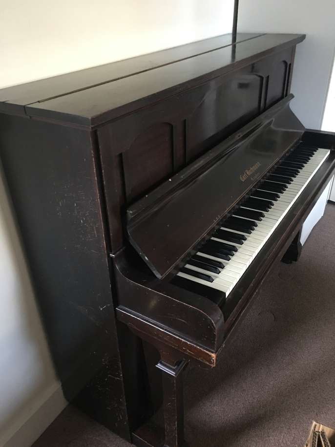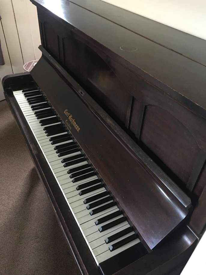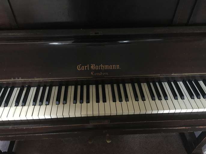 Carl Bachman piano, old but still sounds good. Could probably do with tuning, but all in good working order. Free to collector- collector must be able to transport it.
