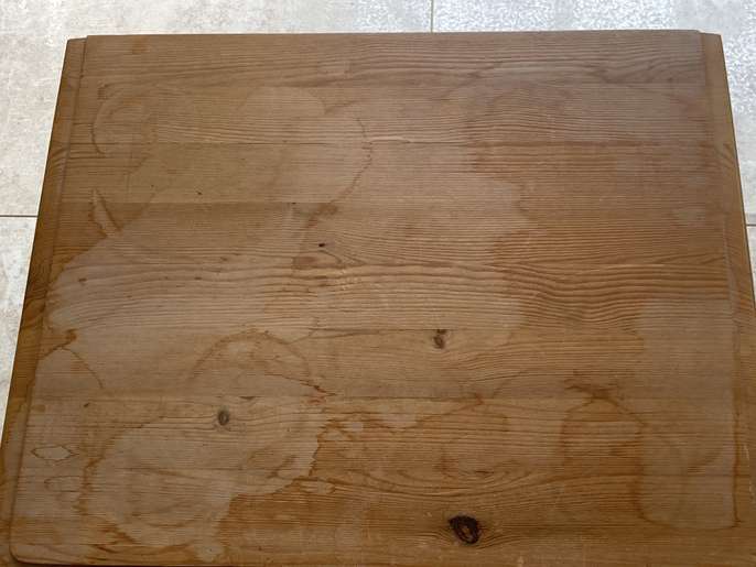A pine bedside chest of drawers with 3 drawers. The item is in good condition although there is some staining on the top as shown in the photograph. Dimensions: 36 cm deep, 43 cm wide, 59 cm high.