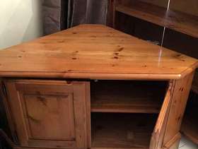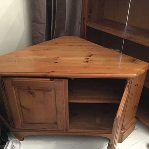 Pine bookcase lovely condition 87cm wide 124cm high 26cn deep Pine Corner TV STAND lovely condition, highly polished 100 cm wide 58cm deep 55cm high Reason for letting them go _ Moving to smaller house