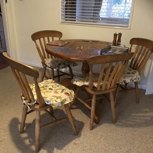 Pine circular dining table with 4 chairs This item is in Kenilworth GB All the details 105 cm diameter Category Furniture Request This Item Ask a Question Post Message