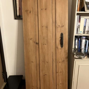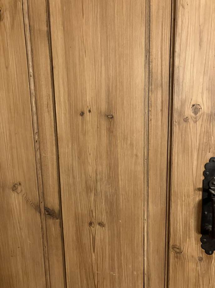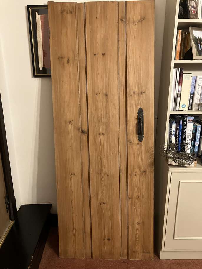Dark pine door. Previously used as bedroom door Good condition Height 195cm Width 75cm Black wrought iron handle