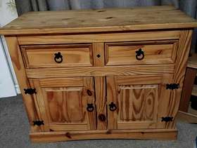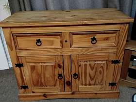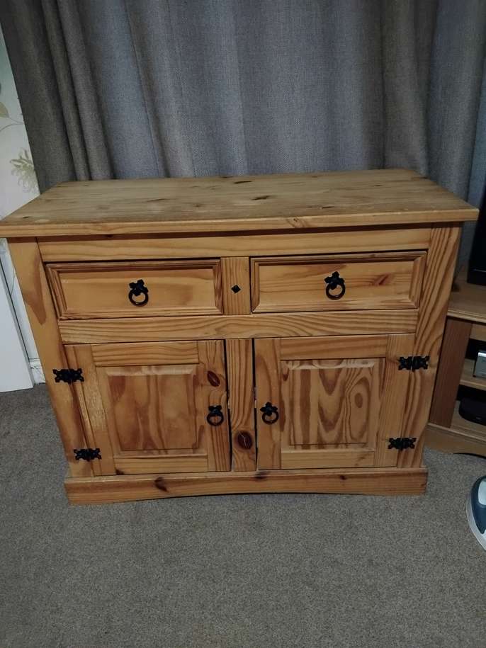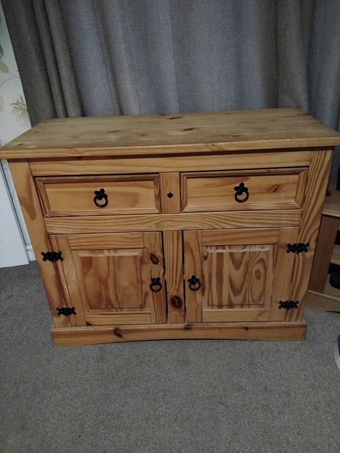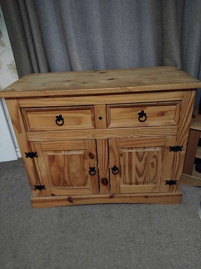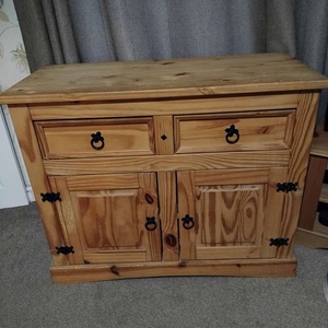 Its a solid Pine Sideboard that needs upcycling as my cat have used it as a scratching post.It is free