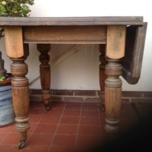 Antique pine table with a flap. top table could do with sanding down and treating otherwise in good condition. 35 x 41" with flap up and 29" in height