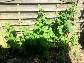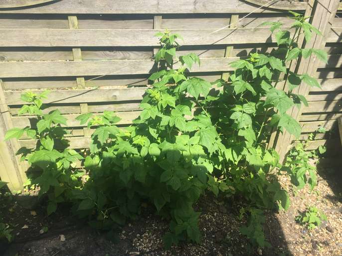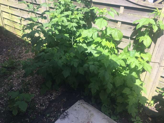 Yellow raspberries plants. They still in the ground. We will pave the area and we have quite a bit.
