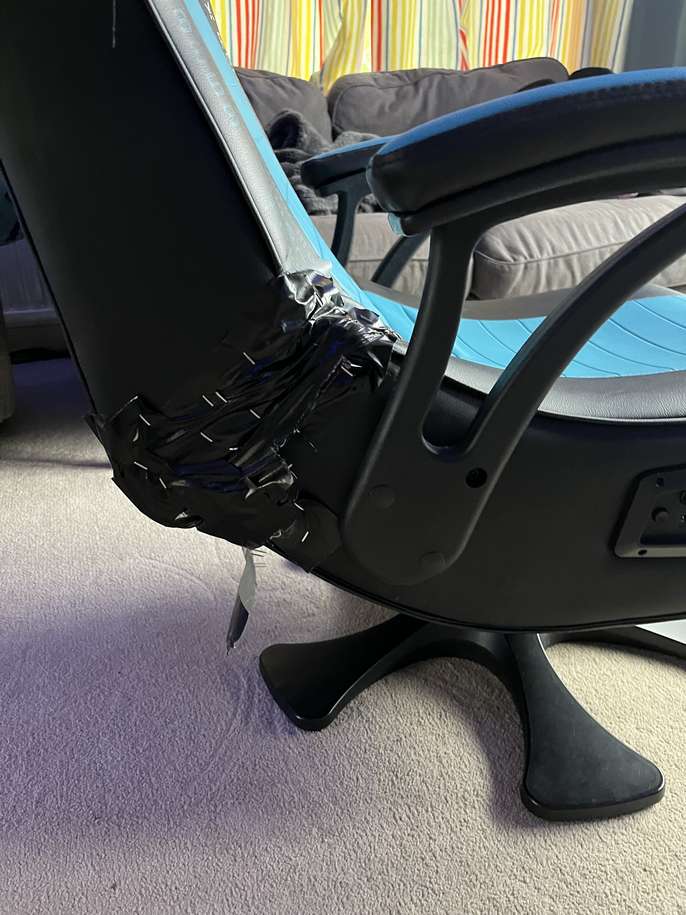 Gaming chair collection Oxshott. Height 90cm. Please note that some repair is needed. It's ok to sit on but needs some strengthening.