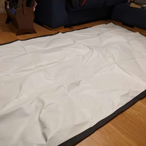 White projector screen to put up on a wall for projecting movies at home. Measures 88" x 50"