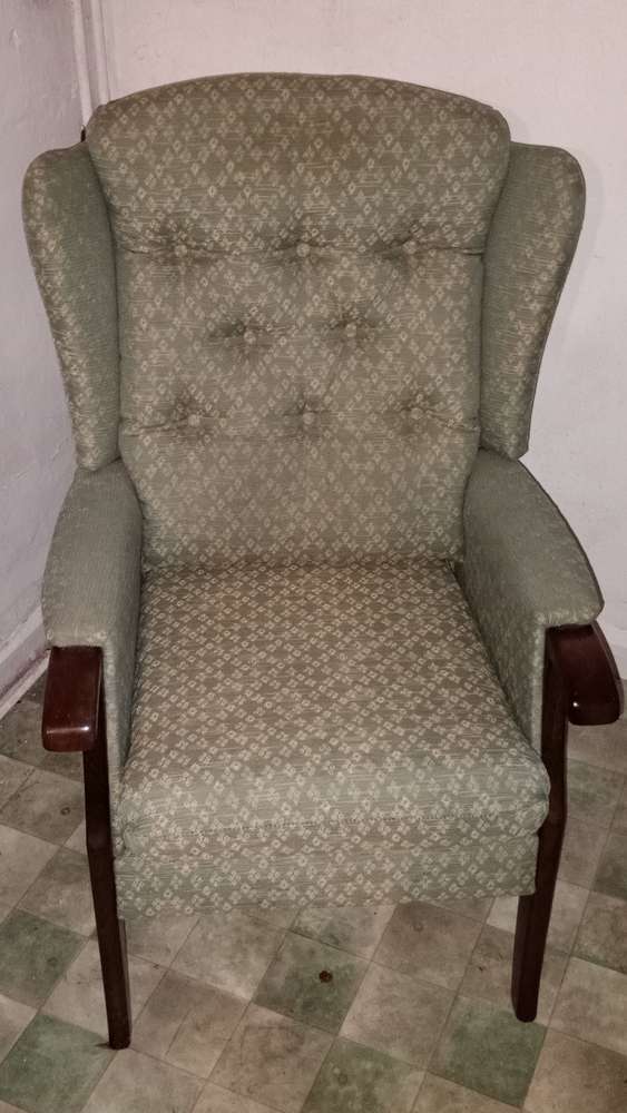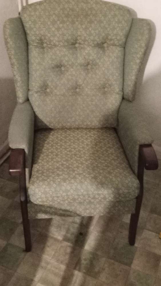 Green chair in the queen Anne style from smoke free home Crosby pick up only please only ask if you can collect