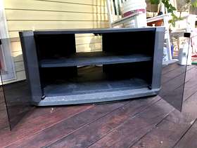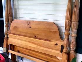 Queen size 4 poster bed frame and corner TV stand