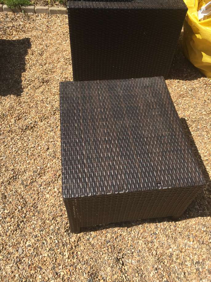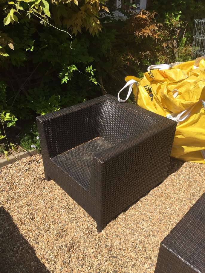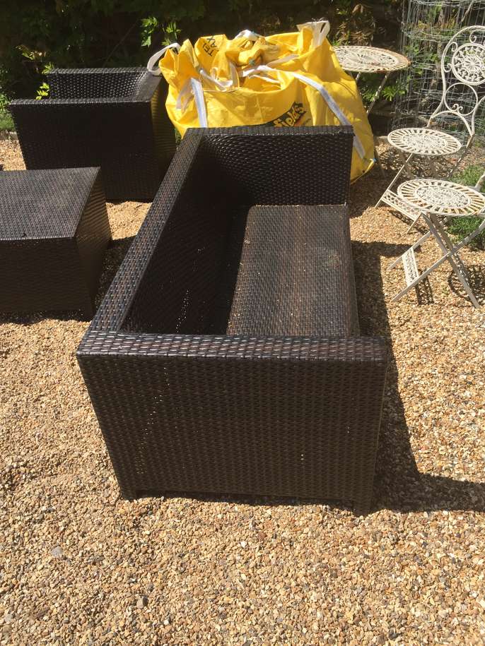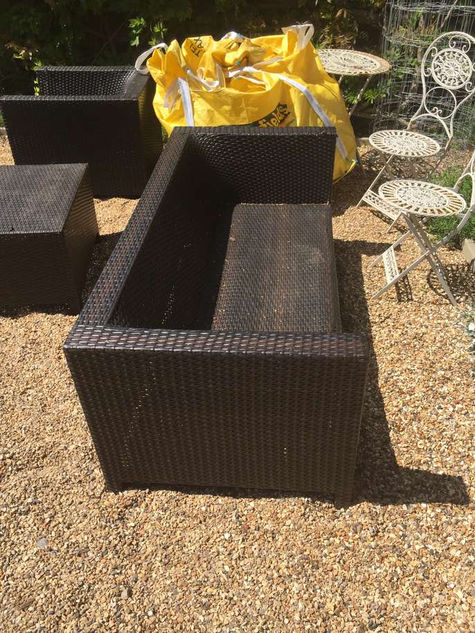 A rattan furniture set - 2 seater sofa, 2 chairs and 2 tables. i also have cushions however they are a bit tatty but very useable.