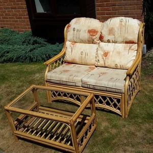 Our rattan sofa and glass-topped coffee table, ca. 2 years old and still in pristine condition, can no longer find room in our down-sized existence.