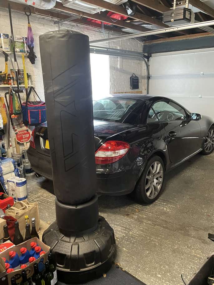 RDX F6 6ft Kara Black Free-Standing Punch Bag – Looking for this gigantic heavyweight opponent punching bag to go to a good home - ideally a LOCAL YOUTH CLUB. The RDX gigantic 6FT (183cm) tall, heavy-duty punching bag has a 110cm circumference. Made with Maya Hide leather and reinforced with an inner anti-rip PU lining, the bag offers exceptional durability. Perfect for boxing, kickboxing, MMA, and more, this bag gives you the ultimate heavyweight training experience. Unlock a whole new level of training intensity with the RDX free standing punching bag. With a remarkable total weight of 150 KG or approximately 330 LBS (when filled with sand) or 110 KG or approximately 240 LB. Currently filled with sand so will need a couple of very strong people to lift it from our garage into a sturdy van.