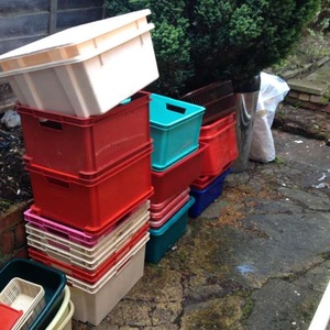 An assortment of plastic storage/container boxes going free for anyone interested.