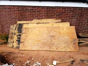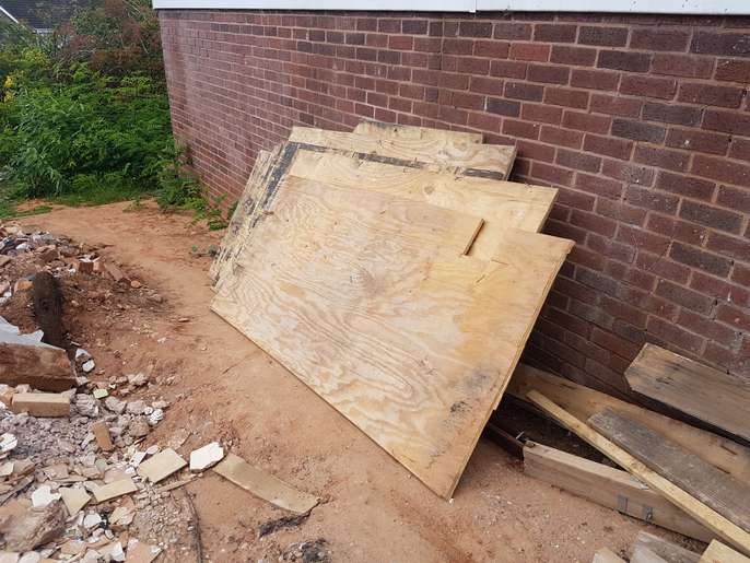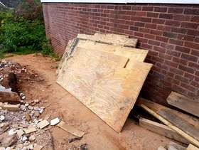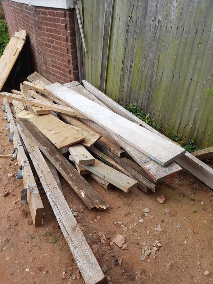 Collection of wooden beams, scaffolding boards, roof boards and doors removed from a renovation project. First come first served.