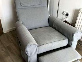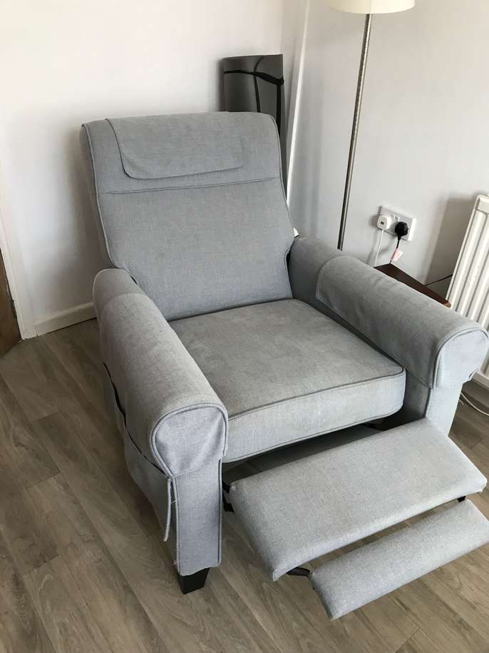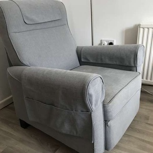 Ikea reclining chair in good working order. Staining to the seat cushion caused by water only. We bought this chair new 7-8 years ago and it has been in a no-smoking, pet-free house. Collection from M21. We cannot deliver.