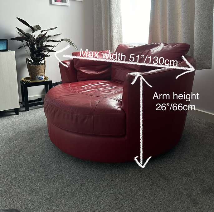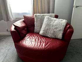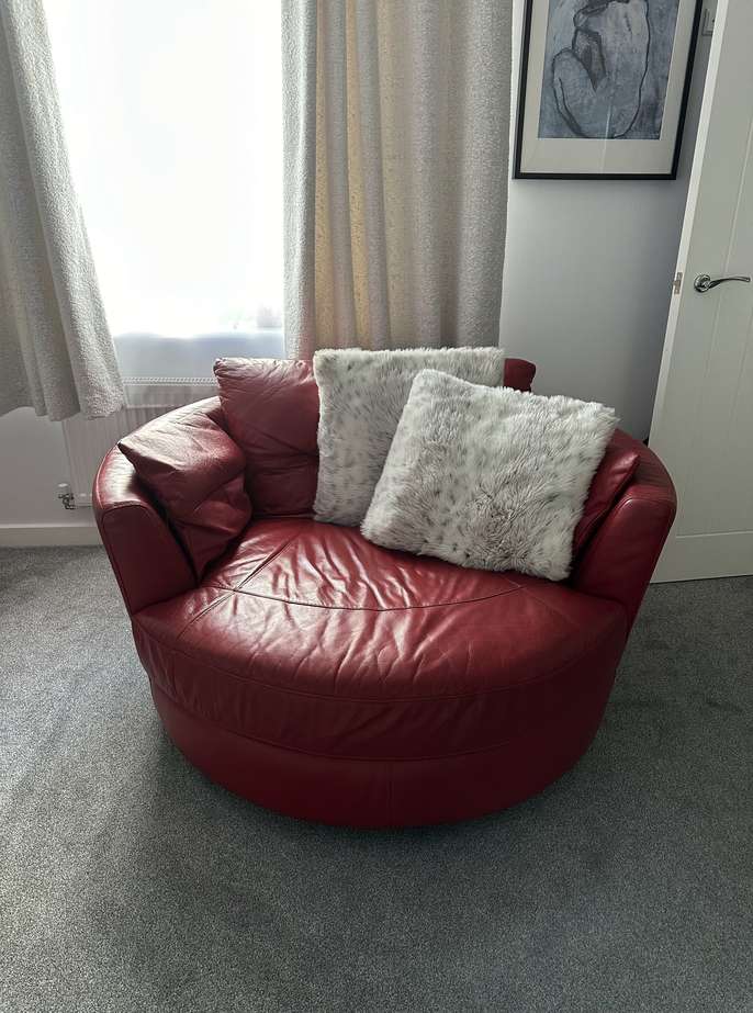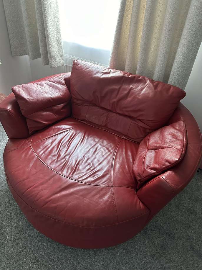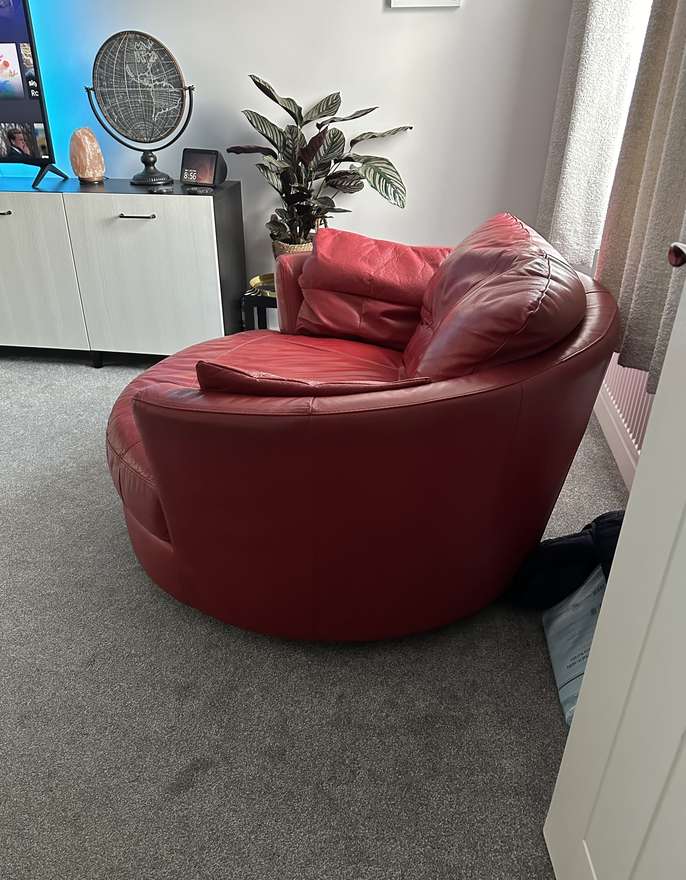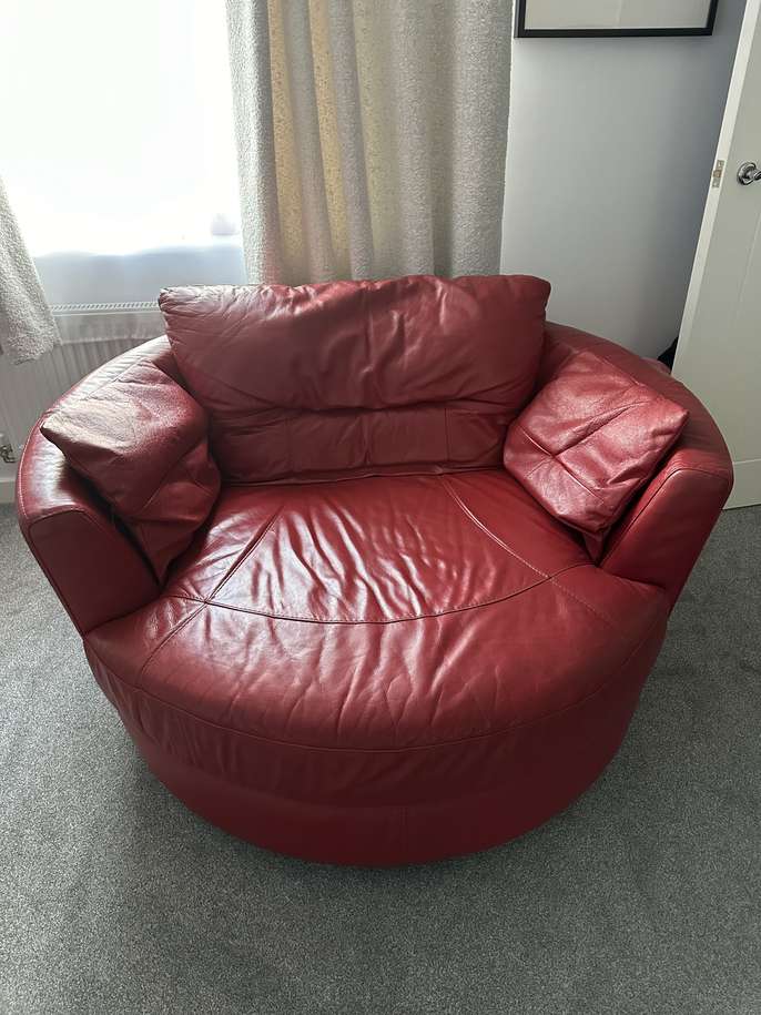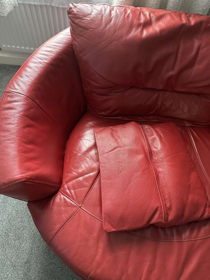 Red Leather Swivel Cuddle Sofa This item is in Banbury GB All the details No longer needed, good condition, comfortable Time Remaining This listing has finished Category Furniture Post Message
