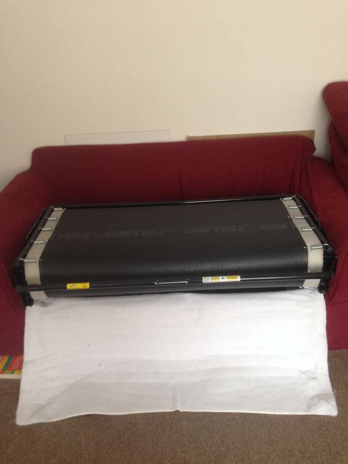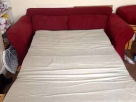 Red sofa bed. Metal framed Bed. Very comfy indeed, mattress with it. 175 by 92 cm. good quality item with loads of life left. Needs collecting by/on Thursday