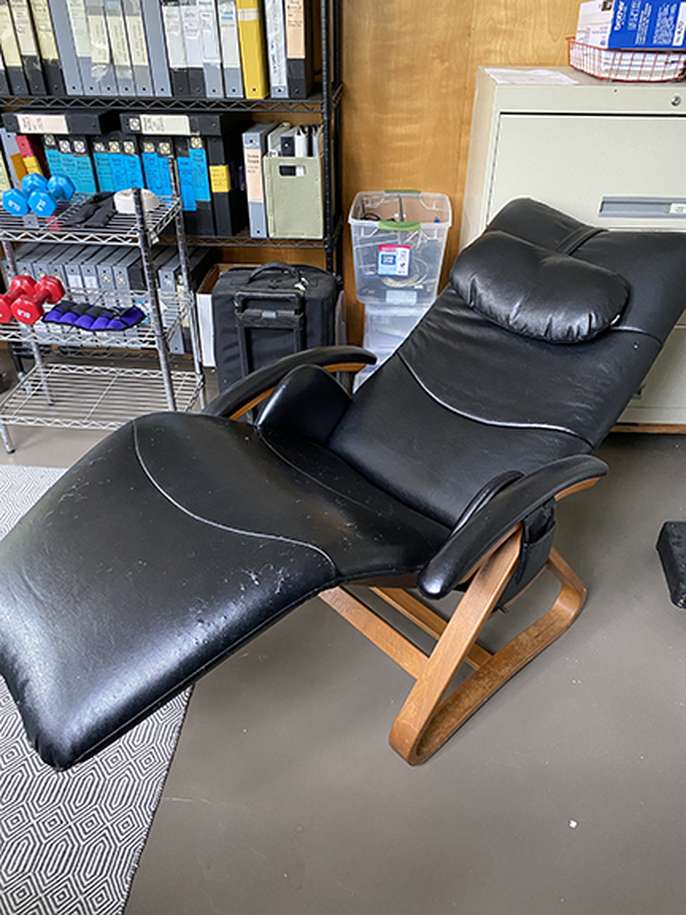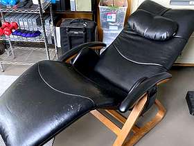 This is a relax the back chair -- reclines, very useful for elevating legs above heart and generally comfortable. Needs partial reupholstery -- minor damage from cat clawing. Fairly light weight to transport. Fits in medium wagon. Located in Jamaica Plain. Must pick up!